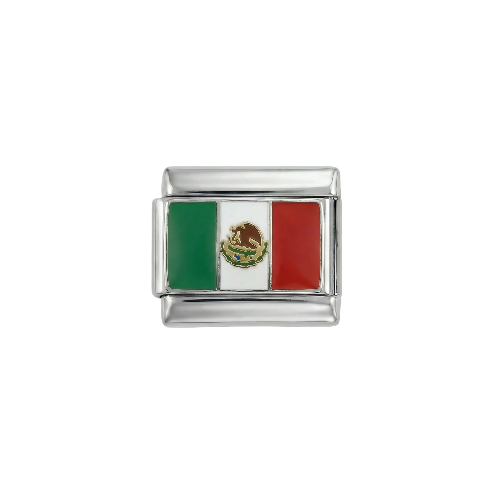 Mexico Flag, on Silver