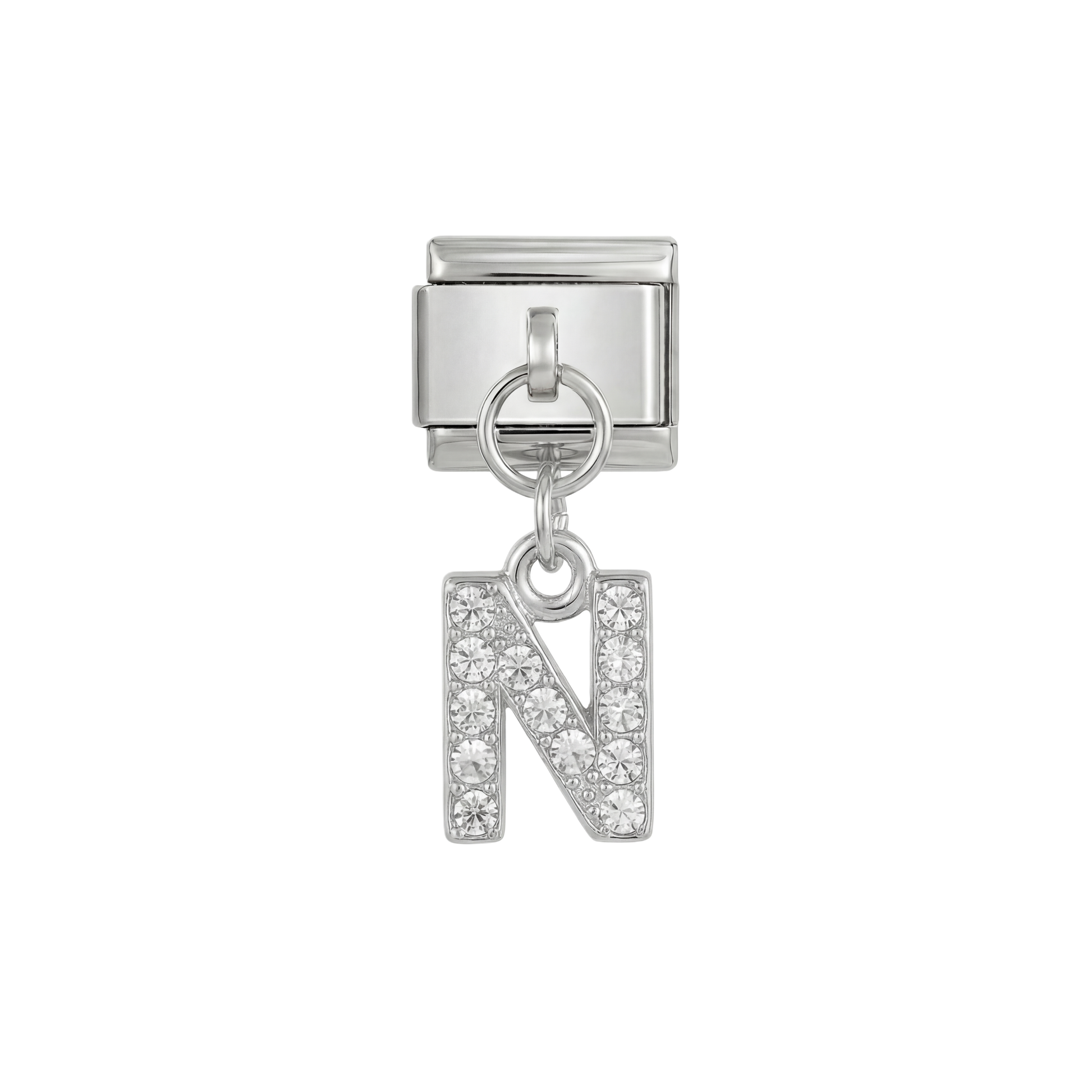 Letter N with stones, Hanging, on Silver